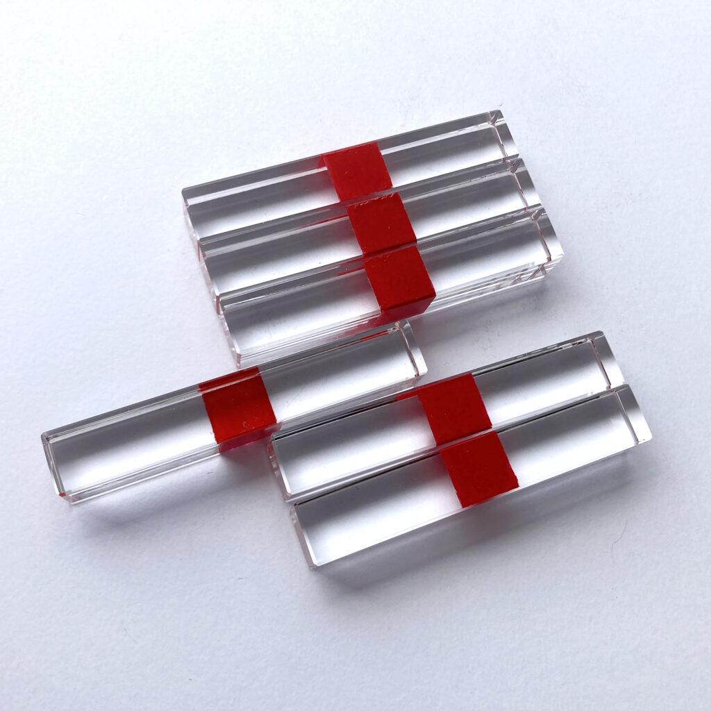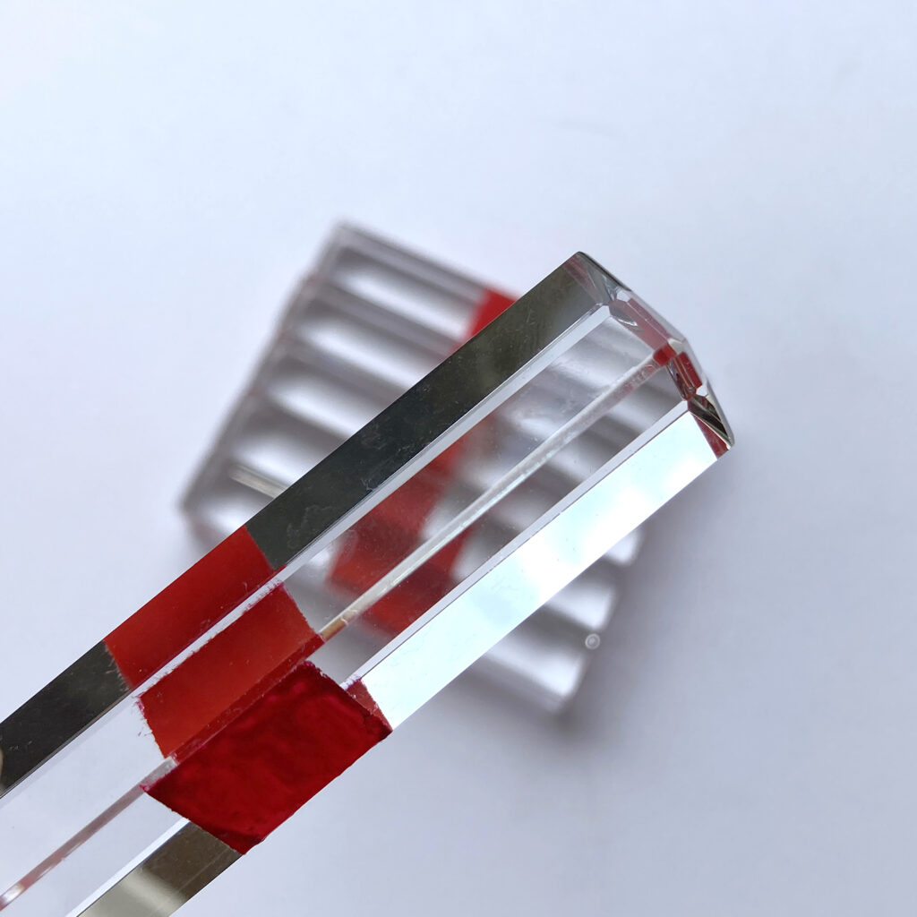 ★クリスタルガラスで作った算木は、実用はもちろんインテリアにも使えます。陰は、現在、赤色にしておりますが、オーダーメイドで、ご希望の色などございましたら、ご相談下さい。※ゴールド・黄色・クリアなど (色見は、見本等と違うことをご了承下さい)